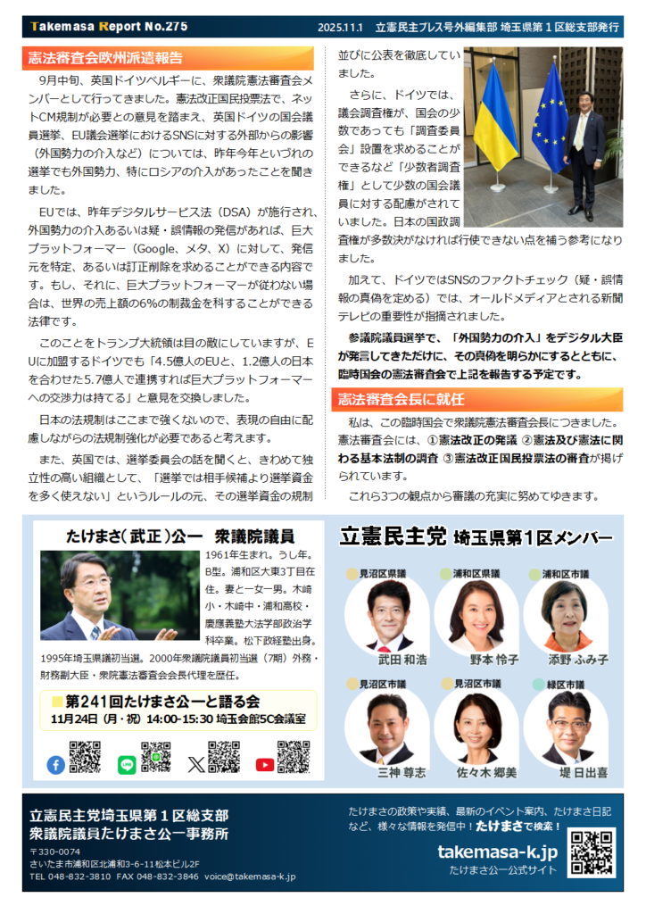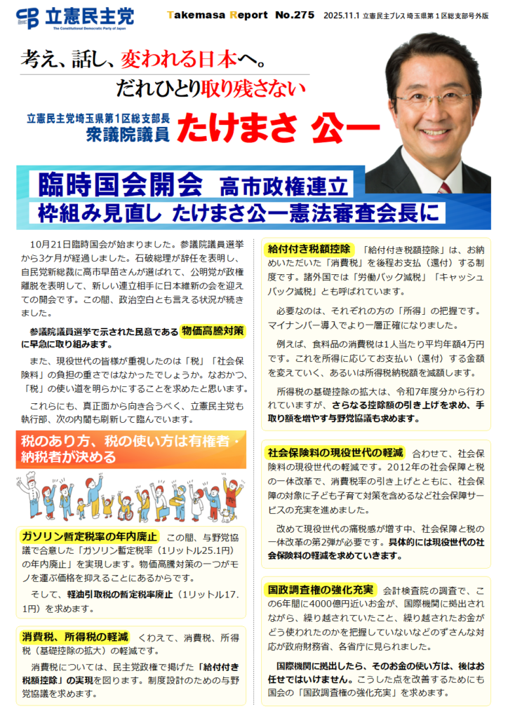 たけまさレポートは早朝の駅頭活動や地域懇談会などでお配りしております。PDF版はこちらからどうぞ。