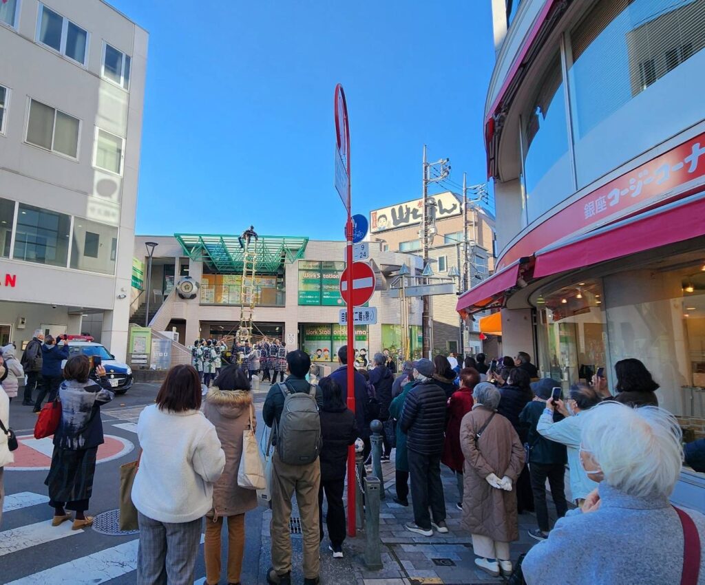 浦和鳶組合若鳶会はしごのりは北浦和駅前にて開催です。女性の乗り手は初めてでした。急逝された親鳶の息子さんも立派に披露されました。きっと亡きお父さんも見守ってくれているはずと思いました。