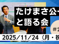 2025年10月25日 / 最終更新日 : 2025年10月25日 たけまさ公一 イベント情報 第241回「たけまさ公一と語る会」 オープンミーティング形式での勉強会「たけまさ公一と語る会」を月例開催しています。皆様との対話を出発点に、より一層地域に根差した政治を実践してまいります。奮ってのご参加お待ちしております。 高市(自維)政権スタート!税・安 […]